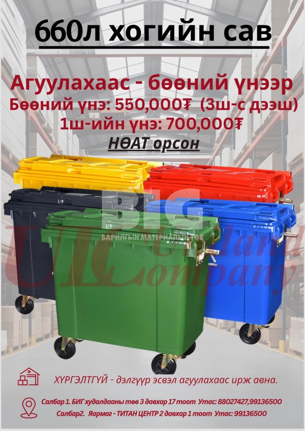 660Л дугуйтай хогны сав 5 өнгөний сонголттой